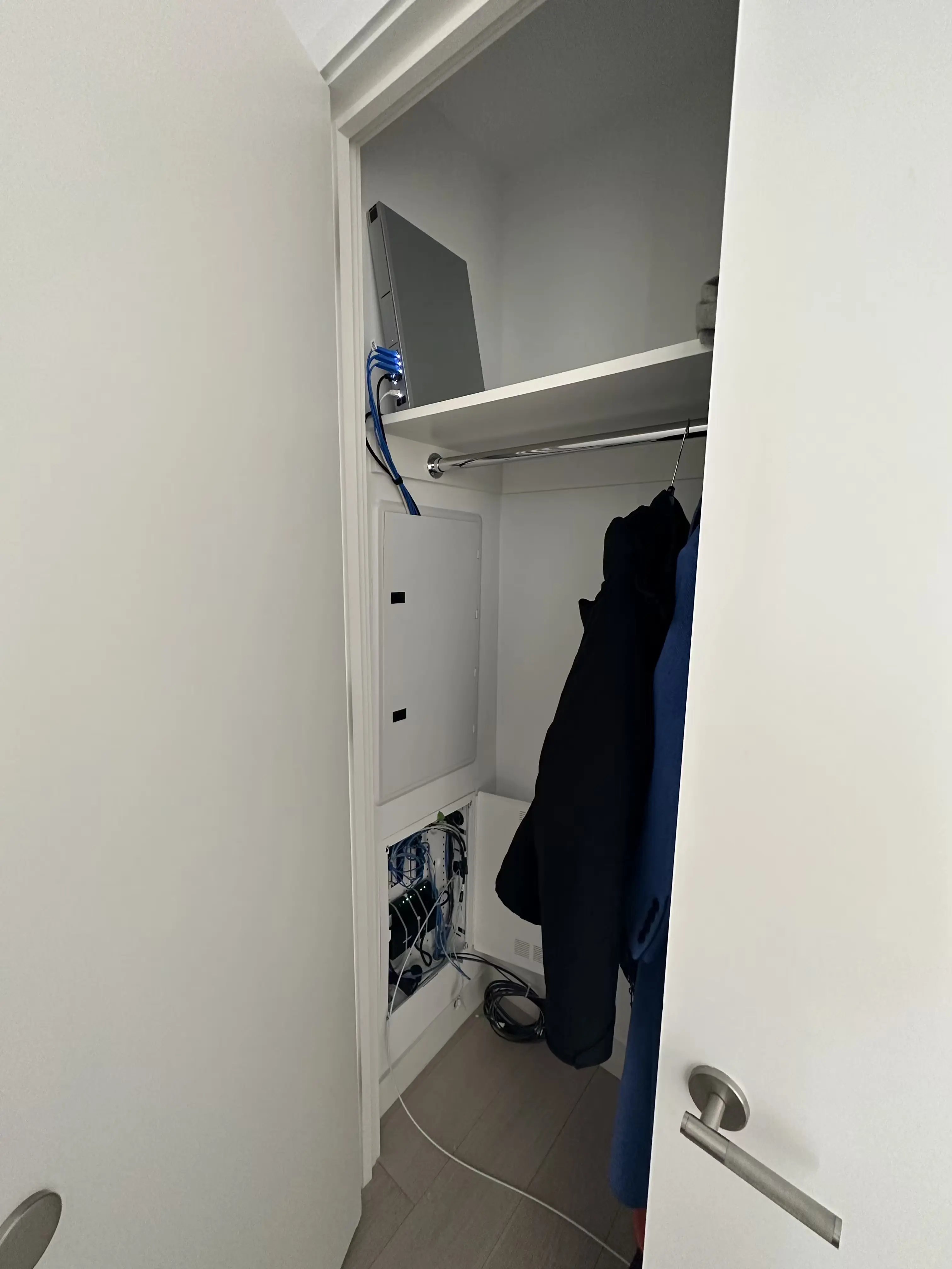 Next up, making it look nice. I could have purchased a rack but it would take quite a bit of space either above or below the closet, so instead I decided to use a StarTech 1U Vertical Wall mount. That way it can remain flush with the wall and keep a lot of usable space.